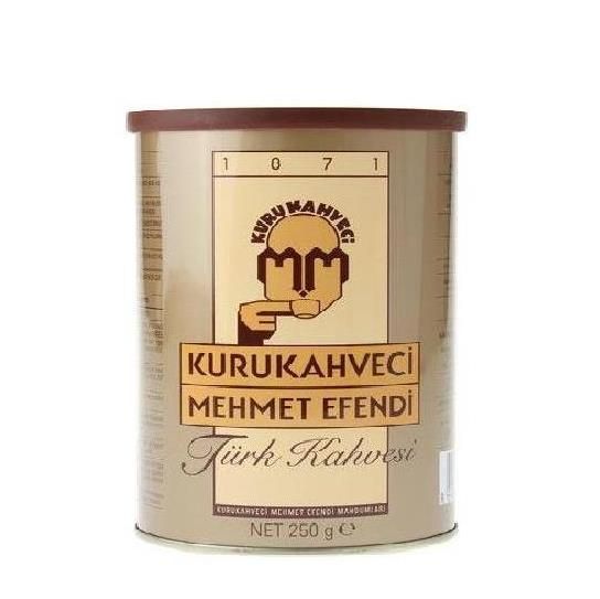 Турецкий молотый кофе Kurukahveci Mehmet Efendi (Курукахведжи Мехмет Эфенди) натуральный, обжареннный, исключительно мелкого помола. В состав входят отборные зерна 100-процентной премиальной арабики средней обжарки. Кофейные зёрна тщательно сортируются, обжариваются, запекаются и перемалываются в тончайший порошок, который невозможно достичь в домашних условиях без изменения вкуса (пережигание кофе из-за многократного перемалывания в кофемолке).